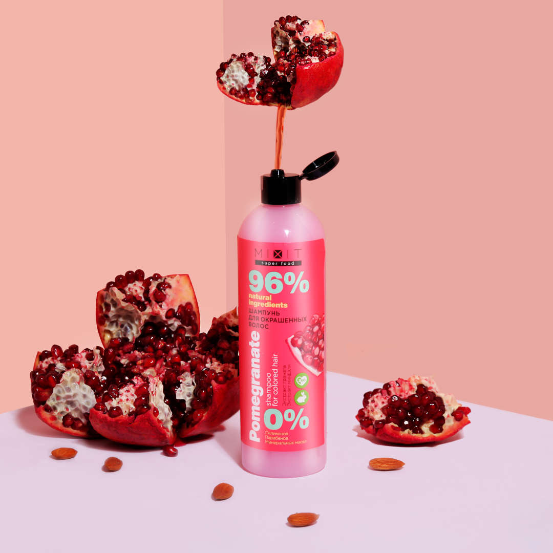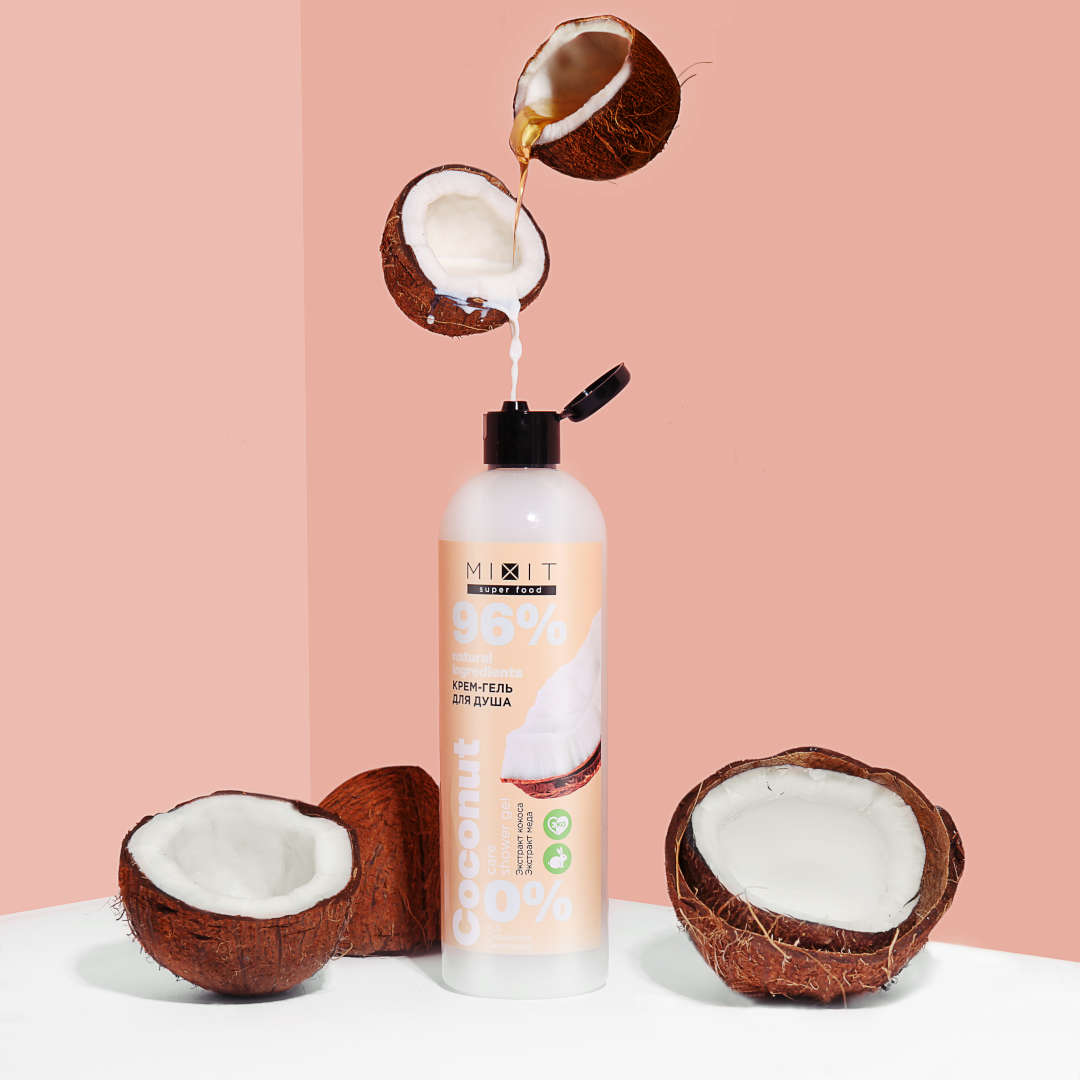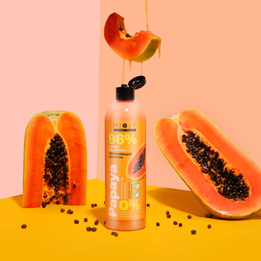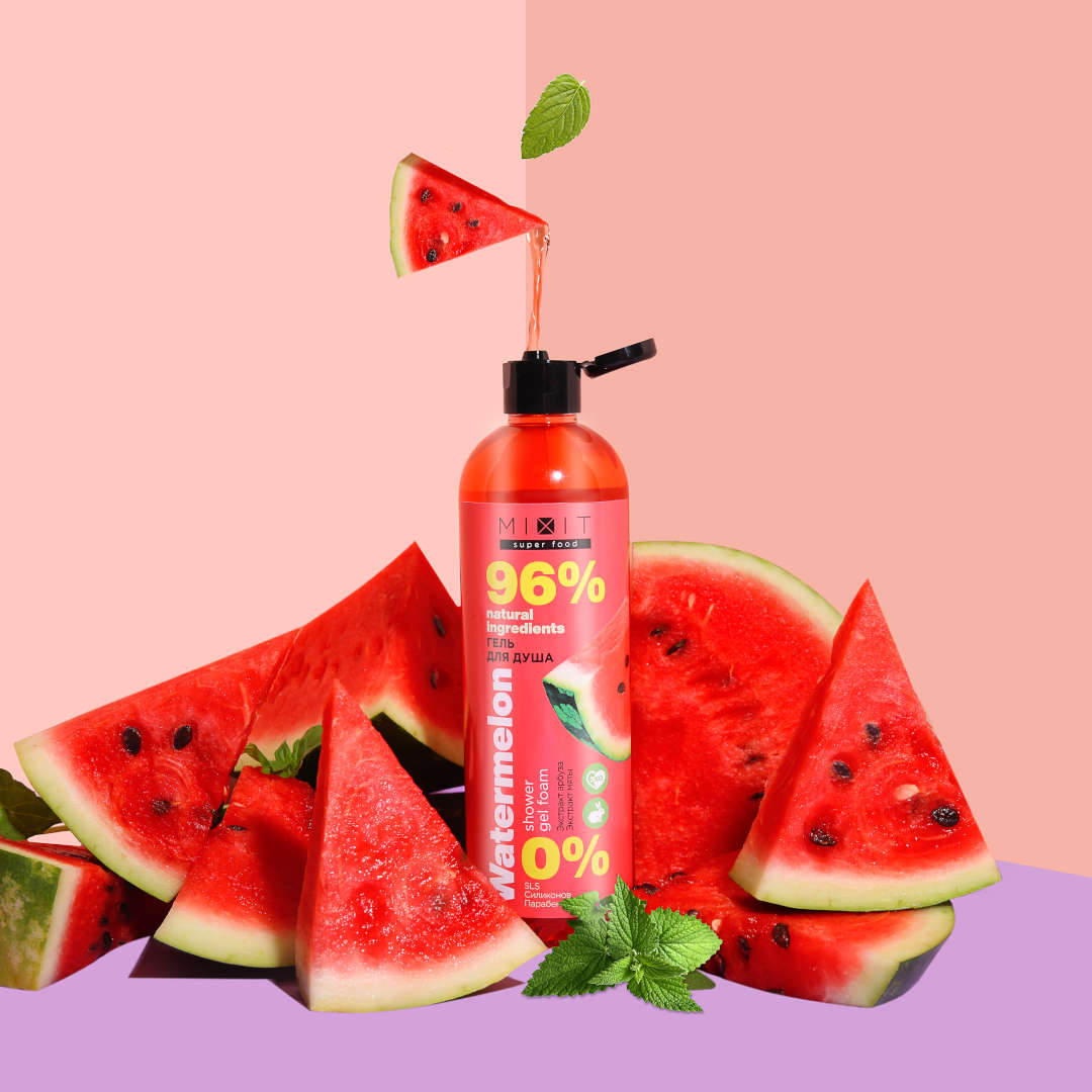 Специалисты MIXIT уверены, что свежие фрукты – залог красивой и здоровой кожи: именно так родилась идея создать фруктовую линейку MIXIT SUPER FOOD, которая представлена шампунями, крем-масками, гелями и гель-пенами для душа, в составе которых 96-98% натуральных ингредиентов – только рабочие активы и суперфуды с минимальным использованием стабилизирующих компонентов.