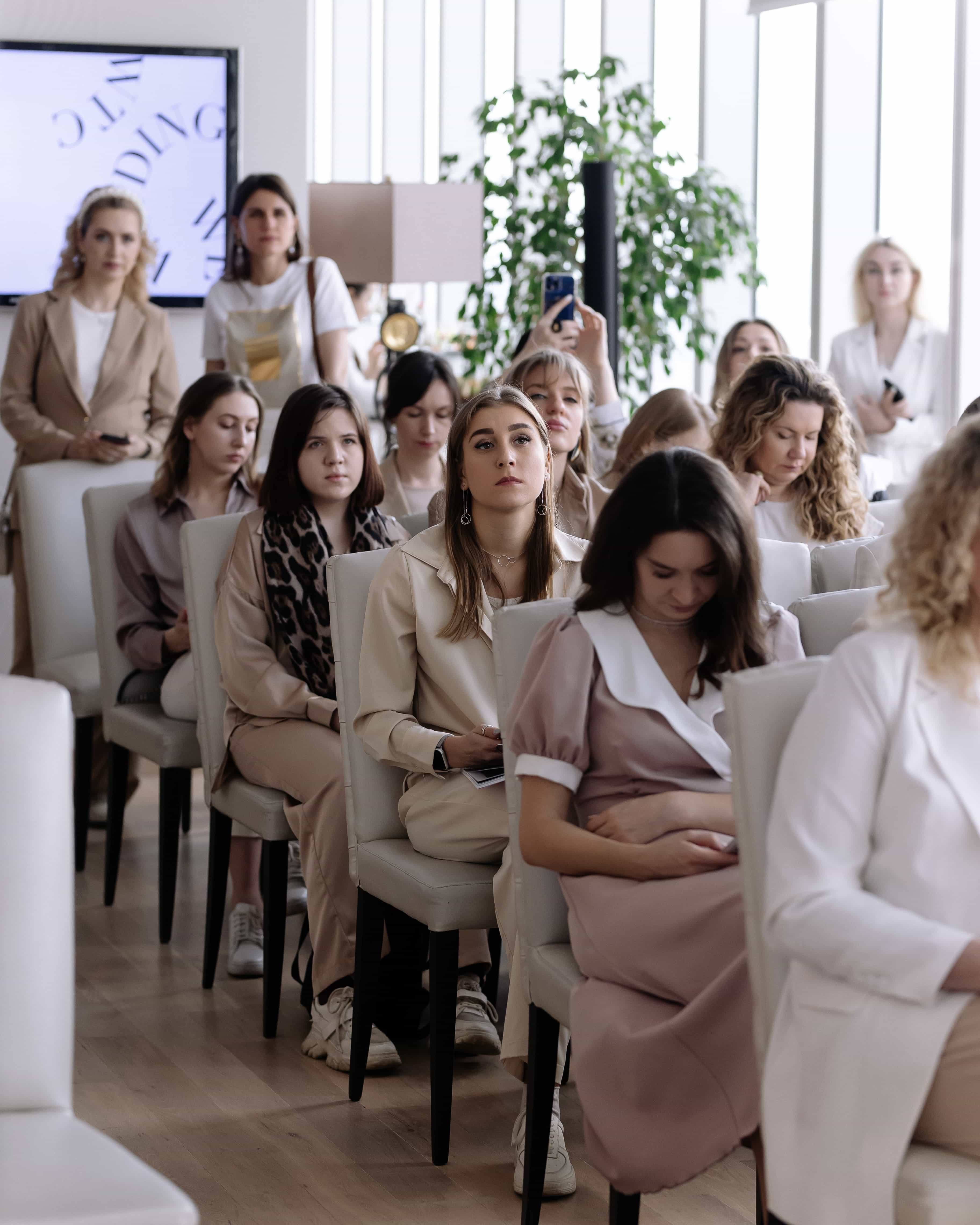 В деловой части мероприятия декоратор девичника Эвелина Шиманович поделилась с гостями своим опытом работы агентства “Команда Эльфов” и создания концепции декора для пар. Стилист Оксана Сергеева, сооснователь студии Essa, провела мастер-класс по трендам в образе невест и поделилась лайфхаками в макияже и прическах с гостями. О ювелирном бренде Leviev и специфике работы с бриллиантами рассказала СЕО компании Татьяна Мелих.