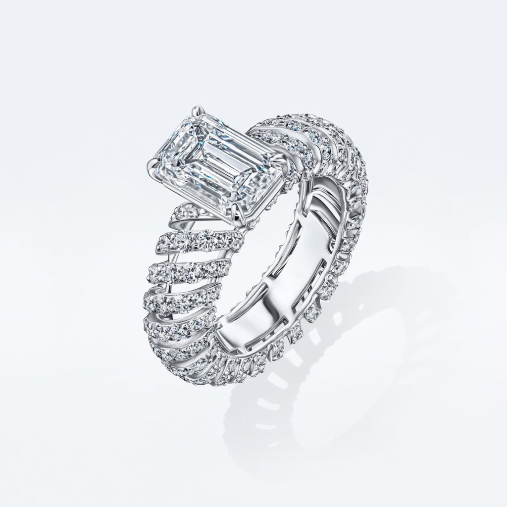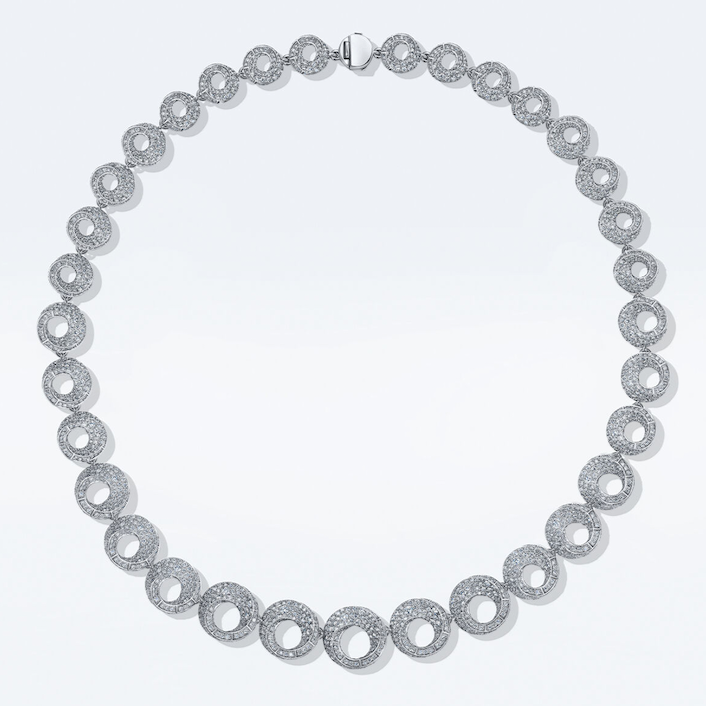 Перекрученная лента с мозаичным бриллиантовым паве в украшениях «Пируэт» вторит круговым фигурам дворцового танца. Всегда востребованная классика в виде бриллиантового браслета-дорожки совершает изящный поворот, заиграв совершенно по-новому своими 282 бриллиантами свыше 13 карат. Празднично сияют 4,5 тысяч бриллиантов объемного и при этом воздушного колье из знаковых круглых элементов.