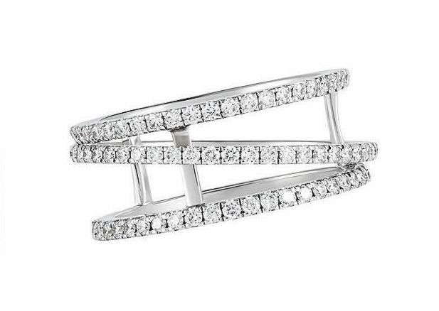 Впрочем, все меняется, в том числе и представления молодоженов о свадебном дизайне, а значит, современные ювелиры готовы на эксперименты с классикой. Например, парные кольца из новой коллекции De Beers, которая называется The horizon line, сочетают современный дизайн и технические достижения. Центральная полоска кольца с бриллиантовым микропаве вращается между двух наружных ободков: вперед или назад, вверх или вниз, в любом направлении – вечная эмблема свободы для каждого. Кольцо The horizon line напоминает при помощи плавного утонченного щелчка, который раздается при каждом повороте ободка, что быть вместе с любимым и вместе двигаться к горизонту будущего – это свободный выбор каждого.
