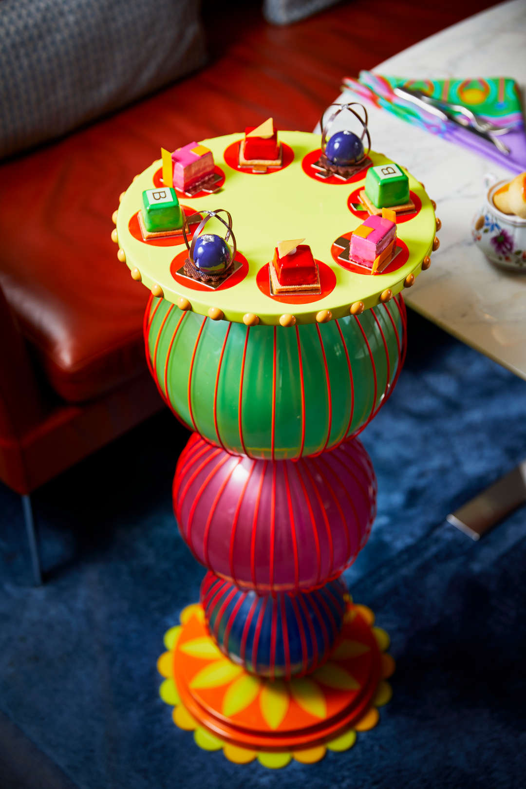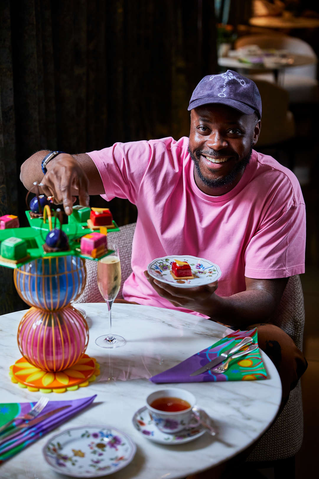 «Я очень рад работать с отелем Bulgari London в честь его знаменательного 10-летия. Мои проекты для этой коллаборации прославляют культурную мозаику Лондона и радость от встречи за трапезой. Подставки для чая навеяны геометрией сферы и встречей разных культур, и я надеюсь, что люди соберутся в отеле и получат удовольствие от яркого красочного угощения во время полуденного чая».