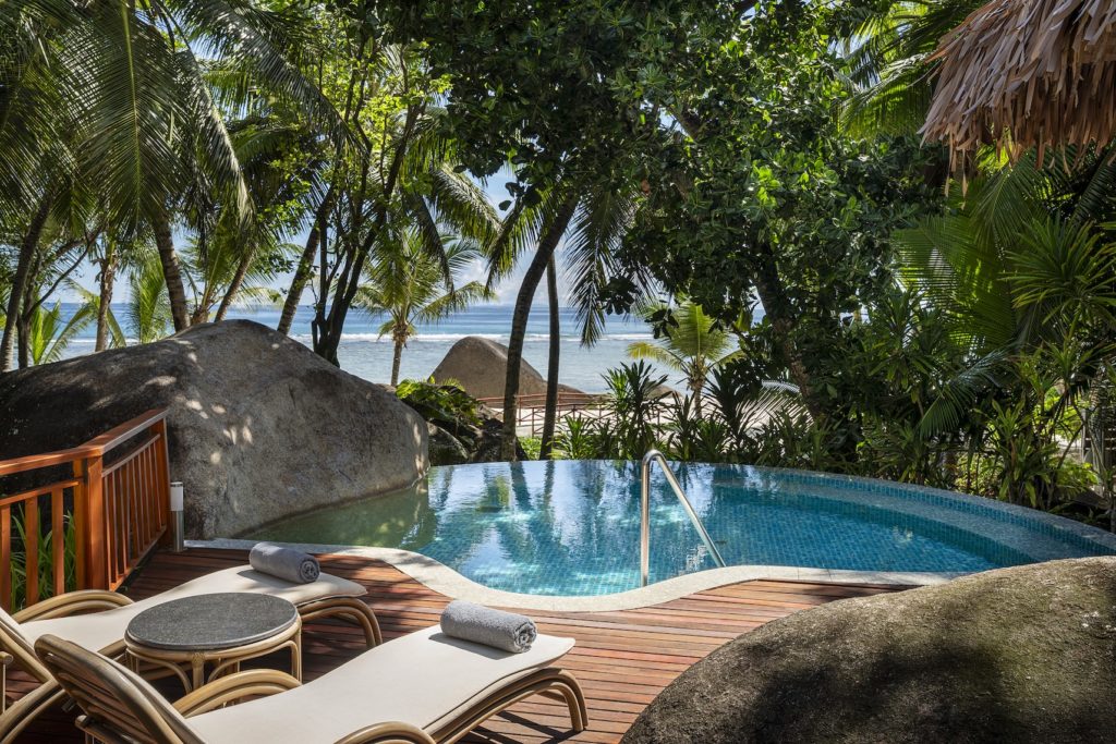 Уединённые Garden Villas скрыты в густой тропической зелени, а пляжные резиденции выходят прямо к белоснежному песку и лазурным водам Индийского океана. Высокие деревянные потолки, просторные террасы, фирменные открытые тропические души и частные бассейны в отдельных категориях подчёркивают естественный формат жизни «внутри и снаружи» одновременно.