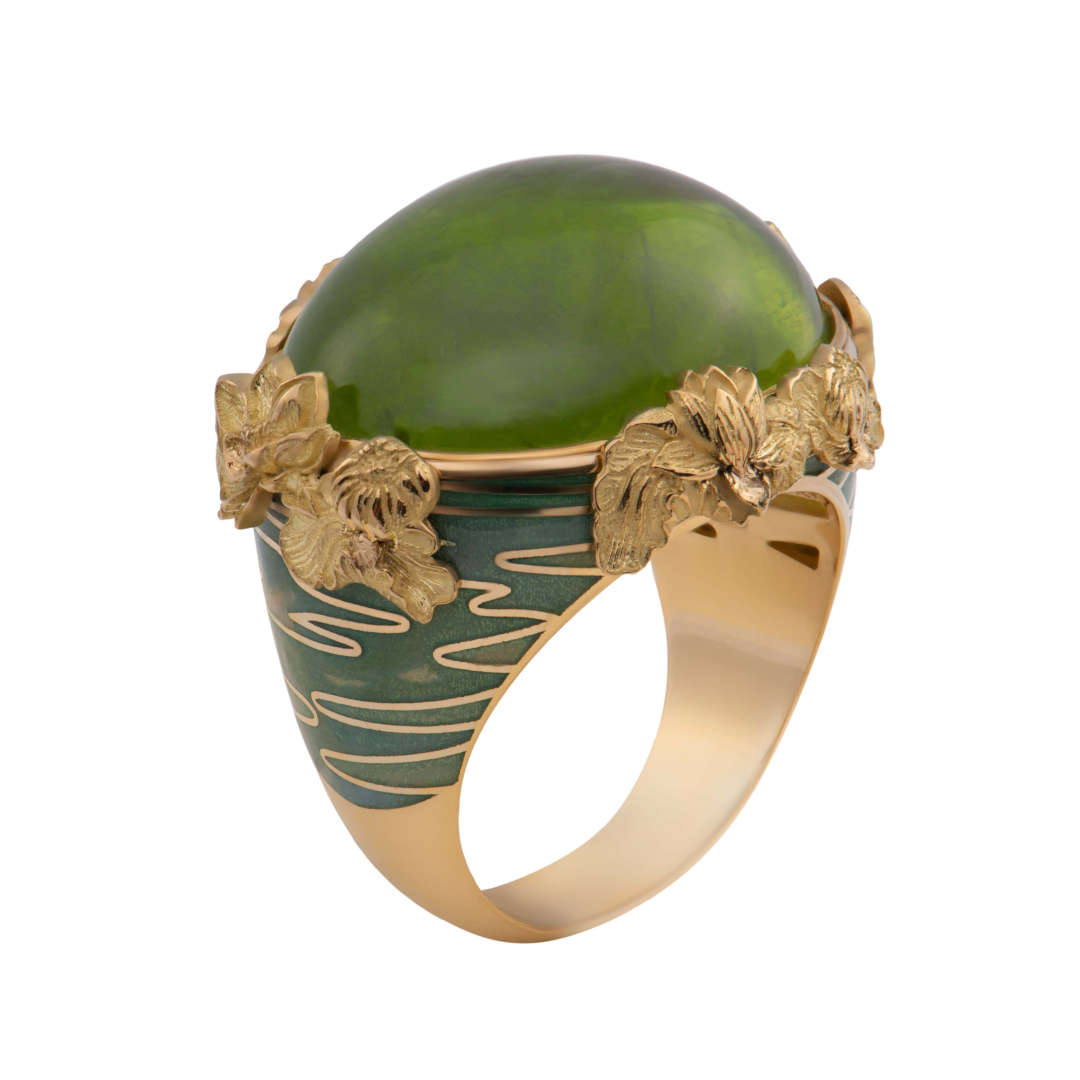 Один из знаковых ювелирных участников Салона – Императорский дом «Русские самоцветы», созданный в 1912 году как общество крупнейших ювелирных компаний того времени, в том числе, мастерских Карла Фаберже.