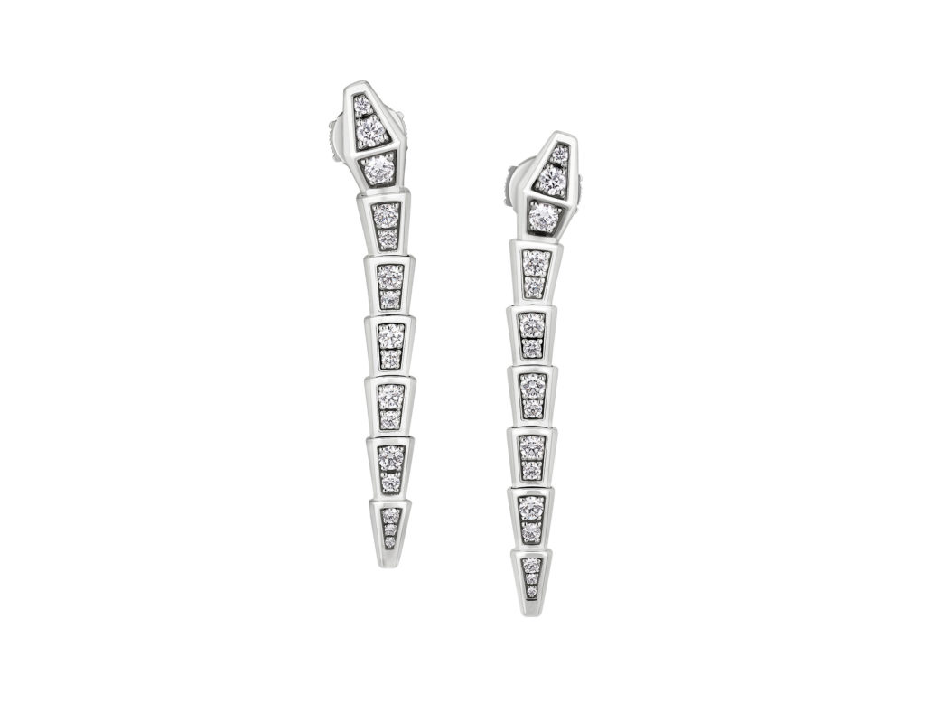 Каноническая Serpenti Viper обретает полное света воплощение в белом золоте. Возвращается ожерелье с кулоном. Новые серьги-кольца трактуют знаковый мотив универсально и современно — ослепительное паве мельчайше следует скульптурным линиям тела змеи Serpenti. Длинные серьги передают суть её гипнотического сияния – каждое движение излучает элегантность и силу.