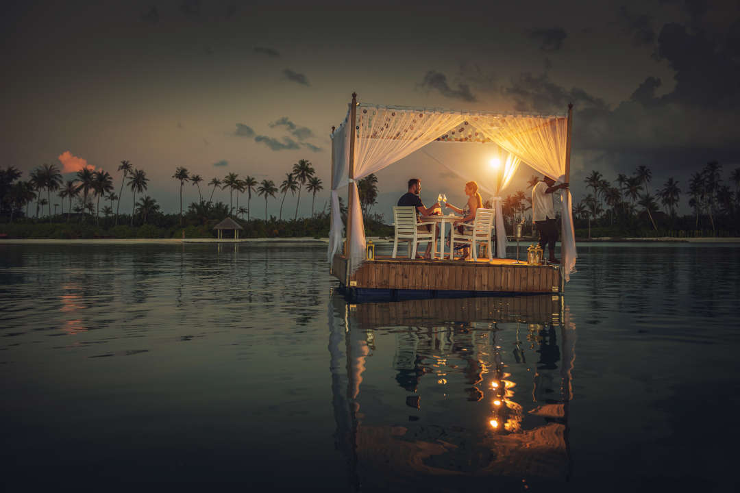 Sun Siyam Olhuveli Maldives представляет уникальный ужин для любителей романтики. Это ужин на плавучей платформе с потрясающим и восхитительным меню,. Только представьте: уединенная красивая обстановка, плавание в лагуне, прекрасные виды ночного неба и только вы вдвоем, наедине с любимым человеком...