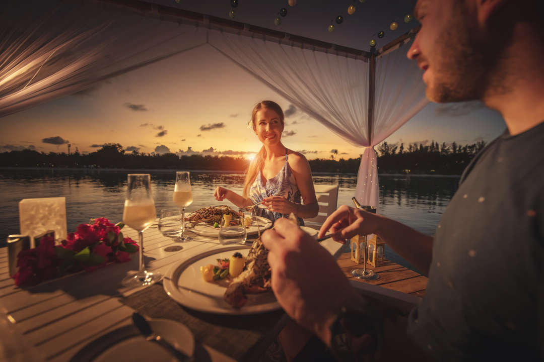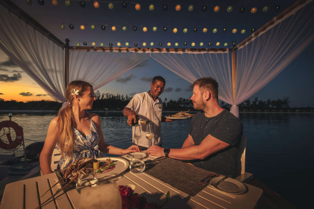 Встреча произойдет на пляже, где Вас будет ожидать лодка и гондольер, которые доставят вас на платформу — ваш маленький мир посреди океана для вас двоих на этот вечер. Это абсолютно безопасно, потому как ужин можно устраивать только в спокойную и безветренную погоду, да и обслуживающий персонал всегда поблизости, контролирует ситуацию и доставляет еду и напитки.